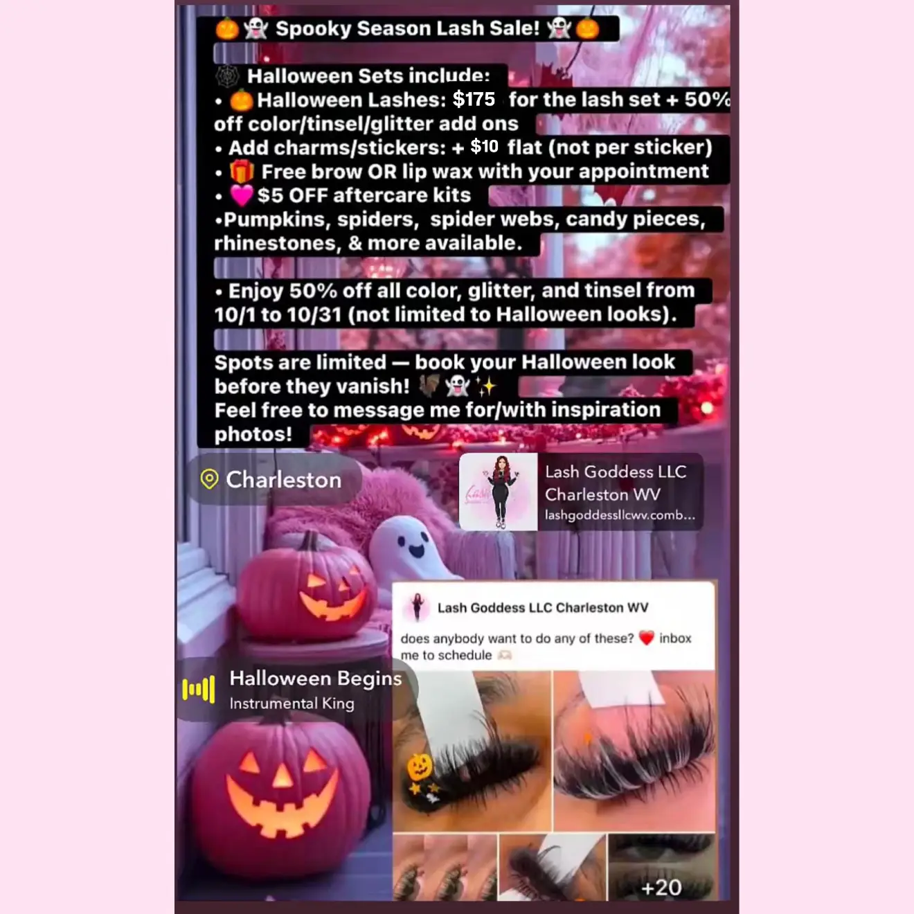 🎃👻 Spooky Season Lash Sale! 👻🎃 📆10/1-10/31 🕸️ Halloween Sets include: • 🎃Halloween Lashes: $175 for the lash set + 50% off color/tinsel/glitter add ons • Add charms/stickers: +$10 flat (not per sticker) • 🎁 Free brow OR lip wax with your appointment • 💜 $5 OFF aftercare kits •Pumpkins, spiders, spiderwebs, candy pieces, rhinestones, & more available. • Enjoy 50% off all color, glitter, and tinsel from 10/1 to 10/31 (not limited to Halloween looks). Spots are limited — book your Halloween look before they vanish! 🦇👻✨ ✨Photos in this post are for inspiration, they are not my work! go to my professional Facebook page for all of the inspiration photos in the post or feel free to send me your own!